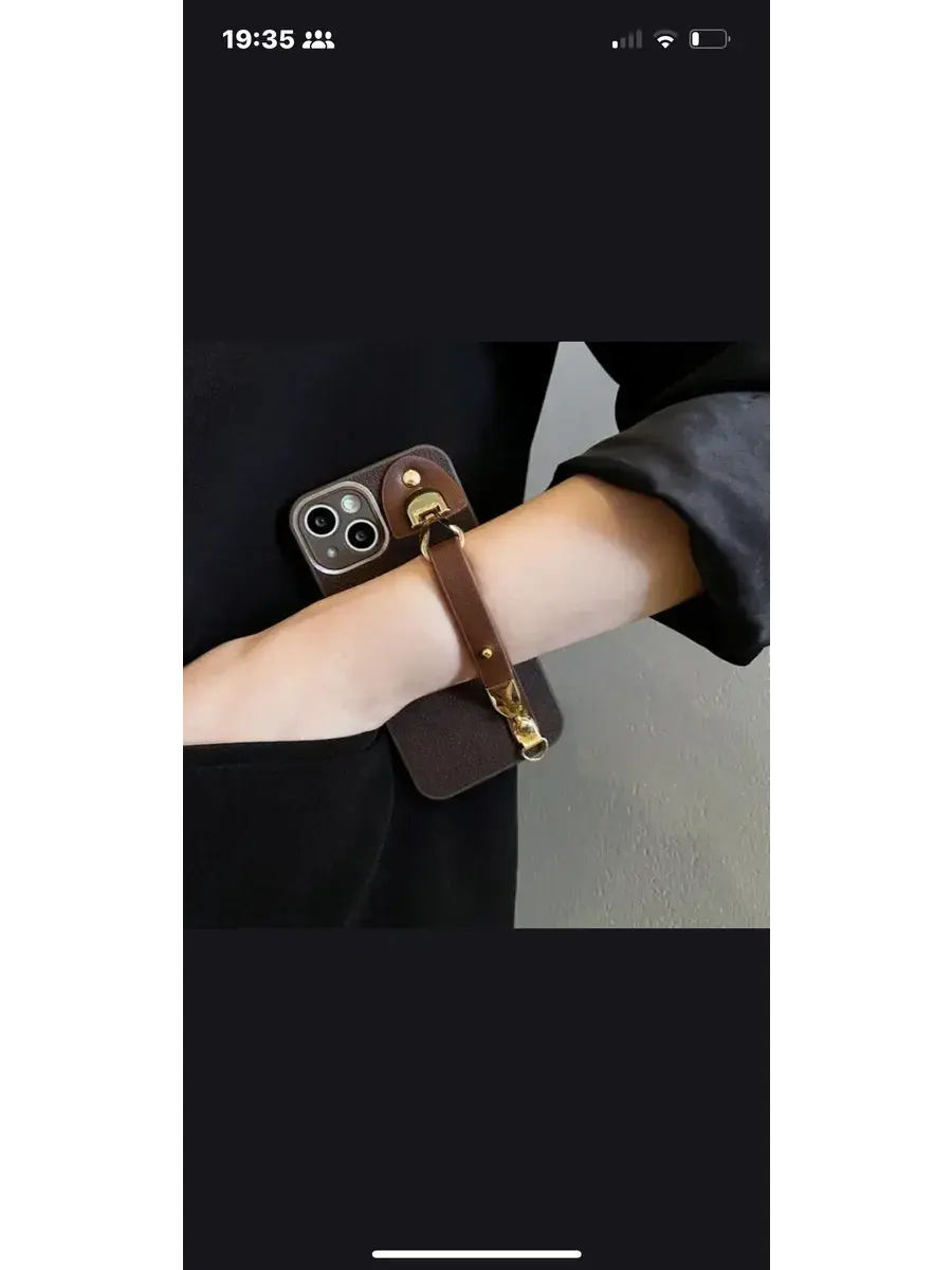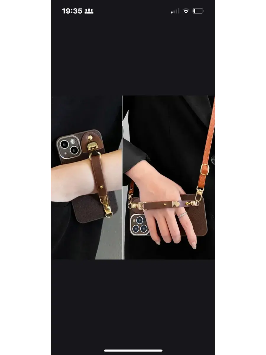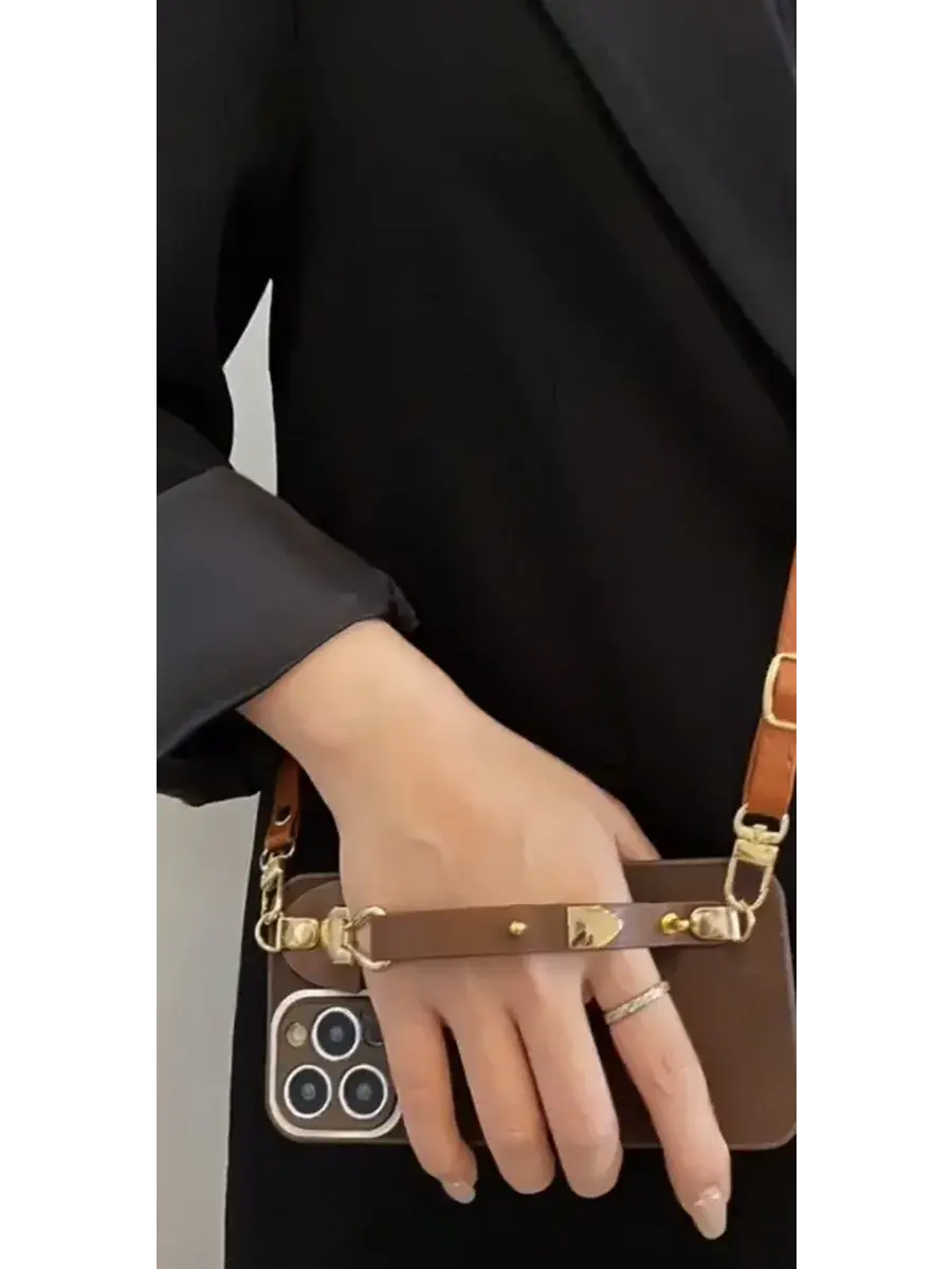 Чехол-сумочка для iPhone 15 Pro с ремешком на руку и на плечо удобен в использовании и быстром доступе к экрану в любой момент.