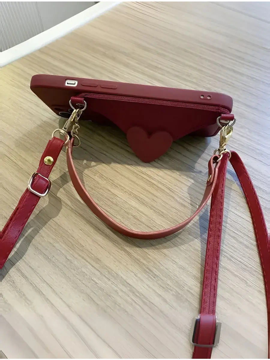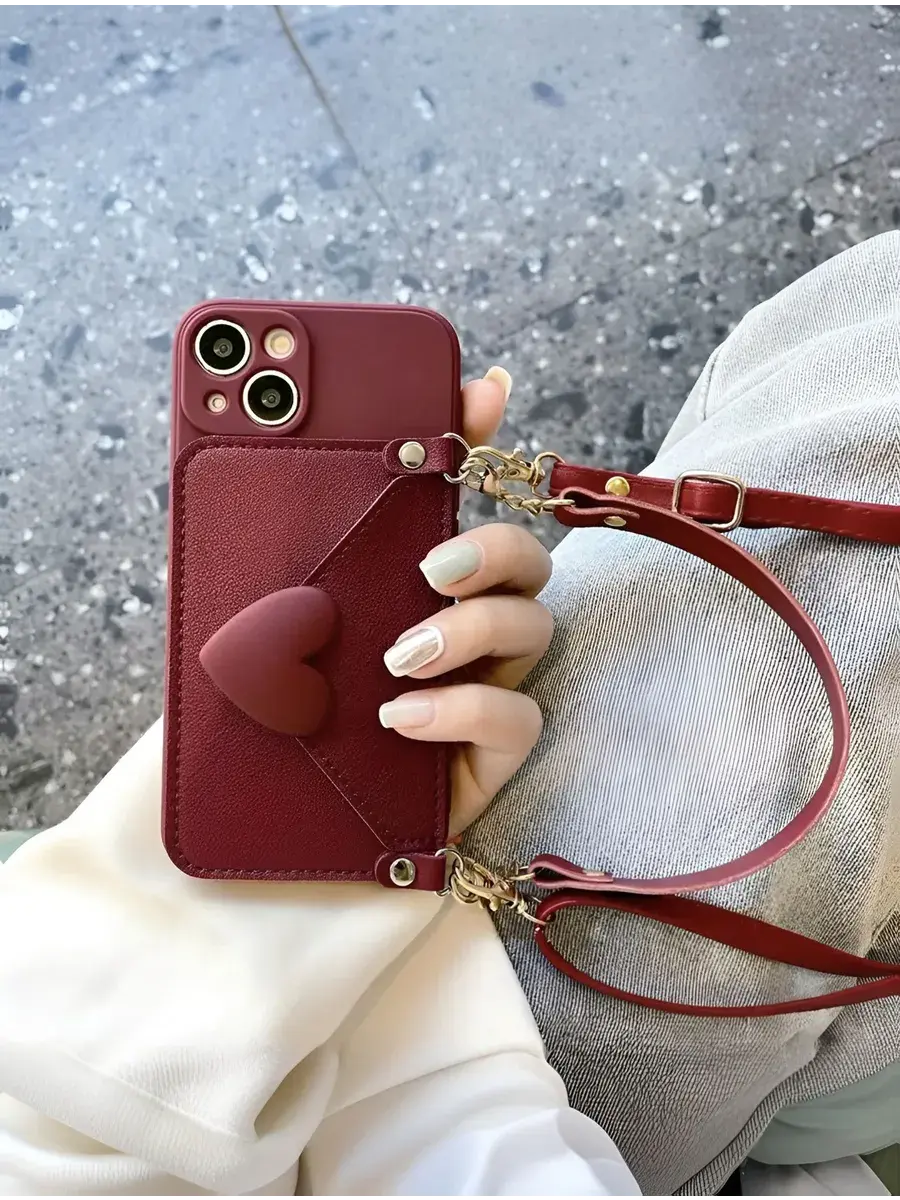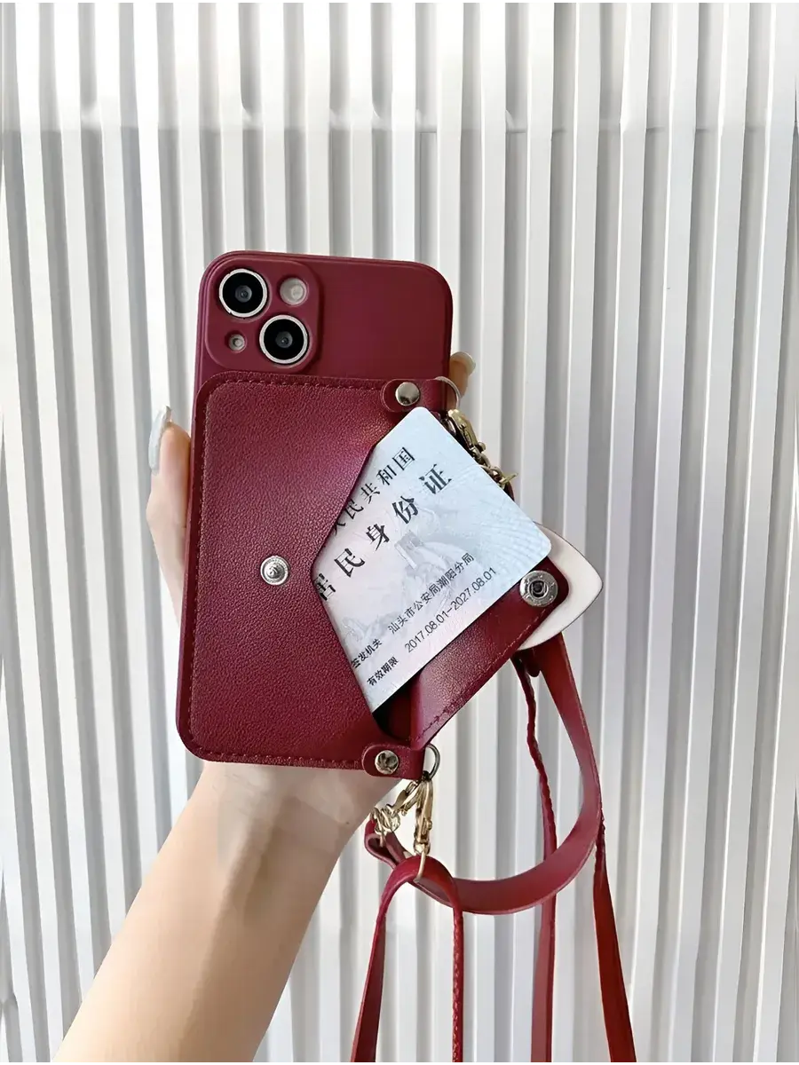 Чехол-сумочка для iPhone 15 Plus с ремешком на руку и на плечо удобен в использовании и быстром доступе к экрану телефона в любой момент, дополнен кармашком для карт и прочих мелочей.