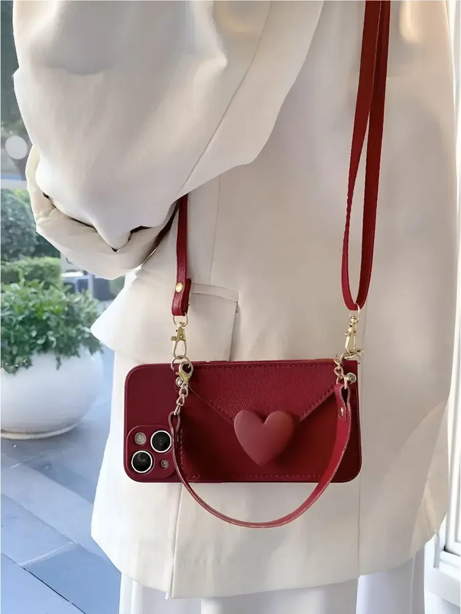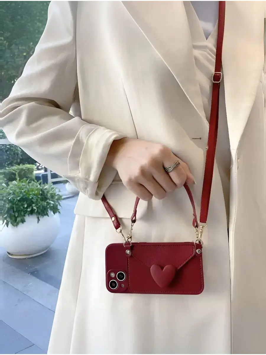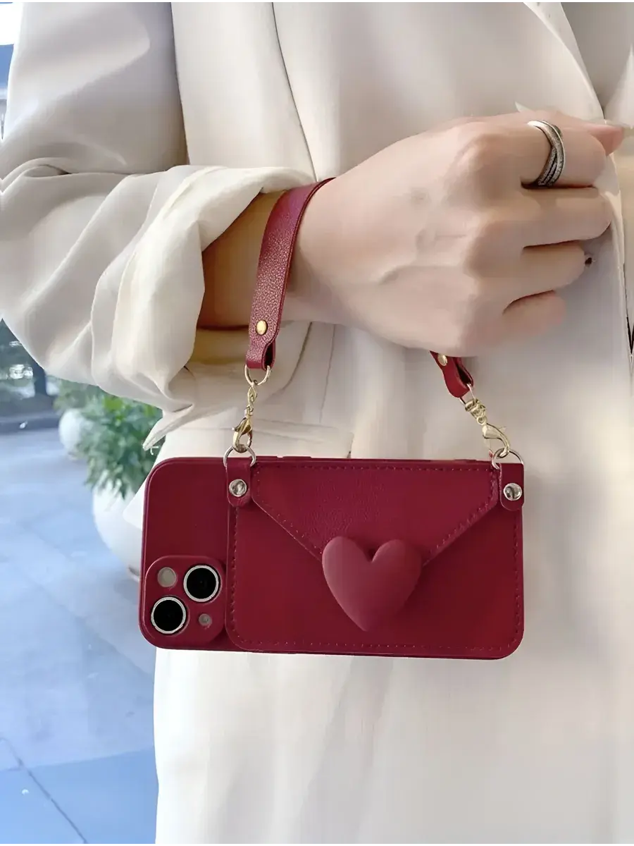 Чехол-сумочка для iPhone 15 Plus с ремешком на руку и на плечо удобен в использовании и быстром доступе к экрану телефона в любой момент, дополнен кармашком для карт и прочих мелочей.