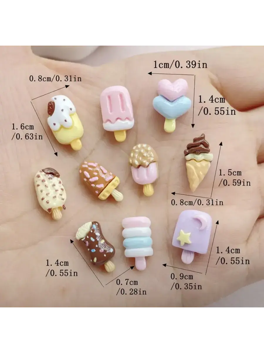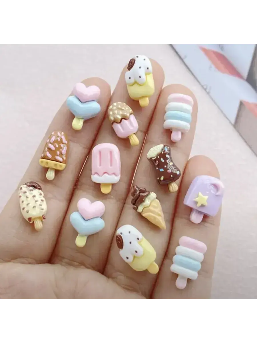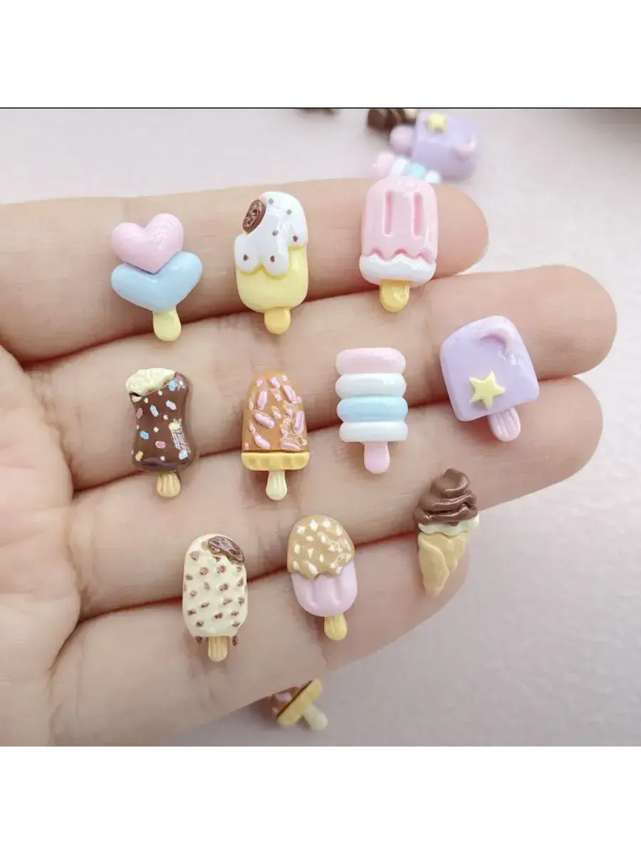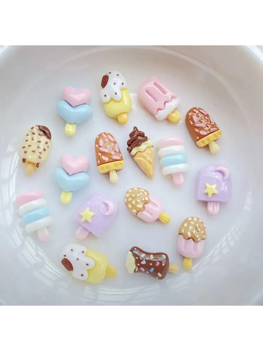 Маленькие декоративные фигурки в форме мороженого для украшения и декорирования. В комплекте 30 разнообразных фигурок.