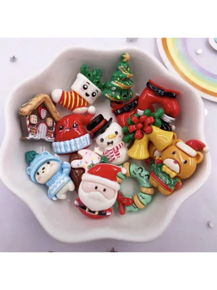 Мини фигурки для декорирования и поделок выполнены из резины. В комплекте ассорти веселых новогодних персонажей.