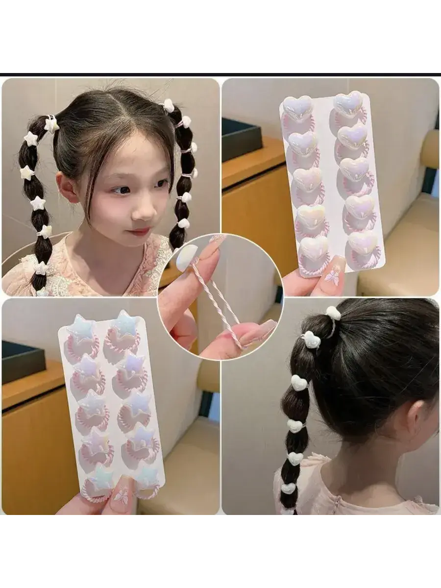 Набор резинок для волос в виде сердец выполнен из пластика жемчужного цвета со звездным переливом. Нежно смотрятся на волосах, создавая стильный образ.
